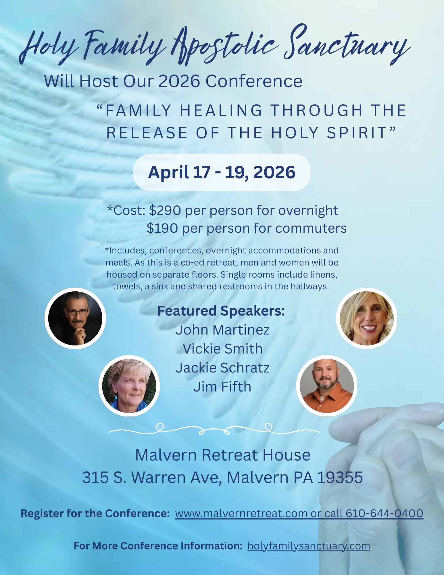 Come join us for a transformative weekend as we receive anointing and gifts of healing on the beautiful grounds of Malvern Retreat House in Pennsylvania.